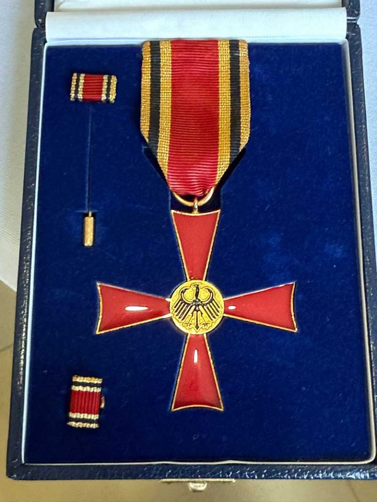 Für Ihr außergewöhnliches Engagement hat Ihnen Herr Bundespräsident Frank-Walter Steinmeier das Bundesverdienstkreuz am Bande verliehen. Ich freue mich sehr, Ihnen diese hohe Auszeichnung aushändigen zu dürfen.