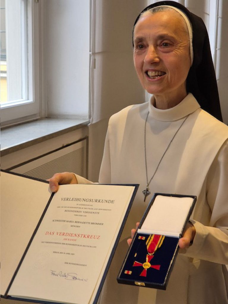 Am 10. September 2025 wurde Sr. Bernadette in München das Bundesverdienstkreuz am Bande für ihr Engagement gegen Erbschleicherei verliehen.