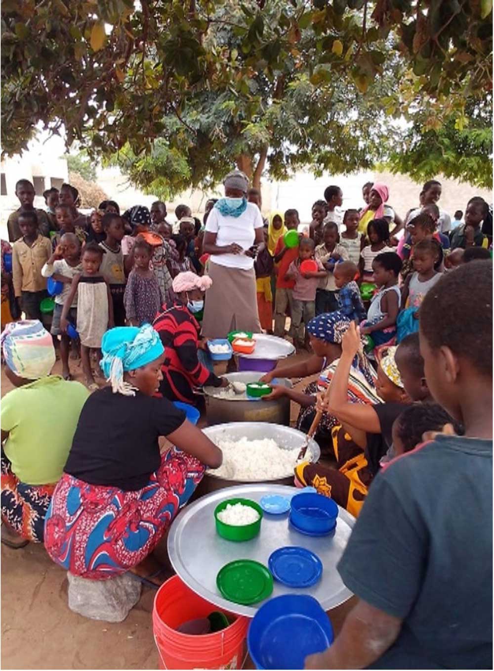 Die Kongregation entwickelte deshalb Maßnahmen zur Überwachung und Verbesserung der Ernährungsbedingungen in Form einer Gemeinschaftsküche mit schulischer Unterstützung. Das Gemeinschaftsküchenprogramm in Nampula wird von einem zehnköpfigen Team geleitet, das aus einem Koordinator, einem Programmassistenten, vier Aktivisten und vier Köchen besteht. Folgende Maßnahmen sind hervorzuheben:- Bau einer kleinen einfachen Veranda für die Küche unter Verwendung einfacher Materialien