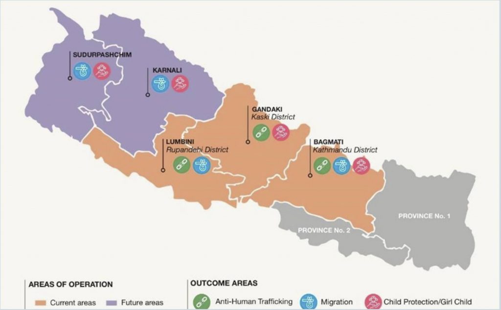 Wir arbeiten daran, die Probleme des Menschen- und Kinderhandels in Verbindung mit unsicherer Migration, Gewalt und Missbrauch, Gesundheit, Lebensunterhalt und Ökologie im Land anzugehen.