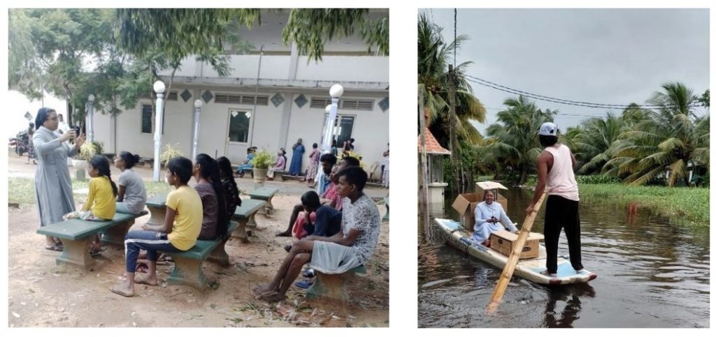 Heute sind über 200.000 Menschen in Sri Lanka ohne Obdach, ohne einen Ort, den sie ihr Zuhause nennen können. Unsere Good Shepherd Sisters in Sri Lanka reagieren auf dringende, lebensbedrohliche Notlagen. Seit Ende des 19. Jahrhunderts sind sie in vielen der am stärksten betroffenen Bezirke präsent: Gampaha, Colombo, Badulla, Nuwara Eliya, Kandy, Matale, Ampara, Batticaloa und Trincomalee. Sie erleben die Verwüstung hautnah mit.
